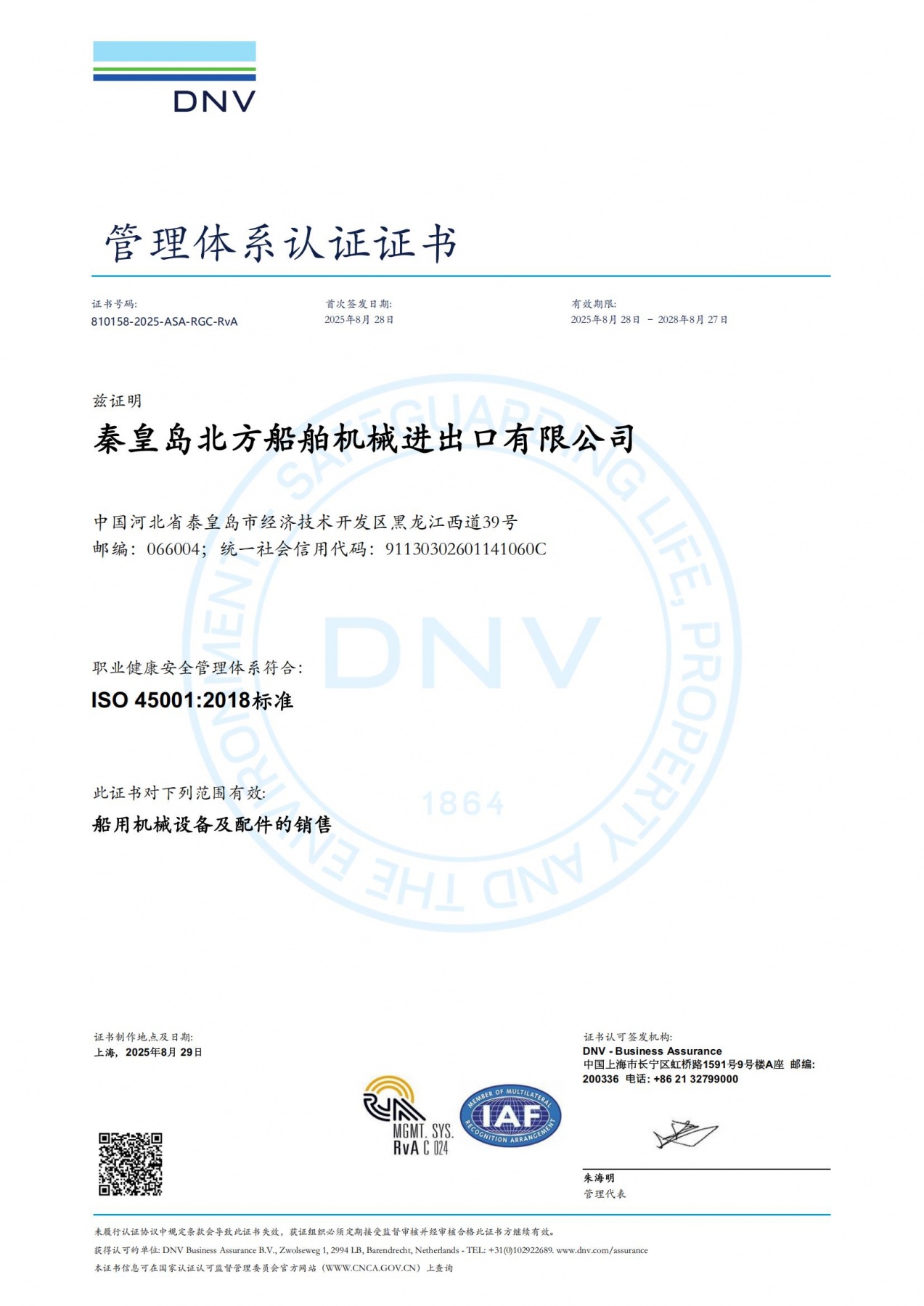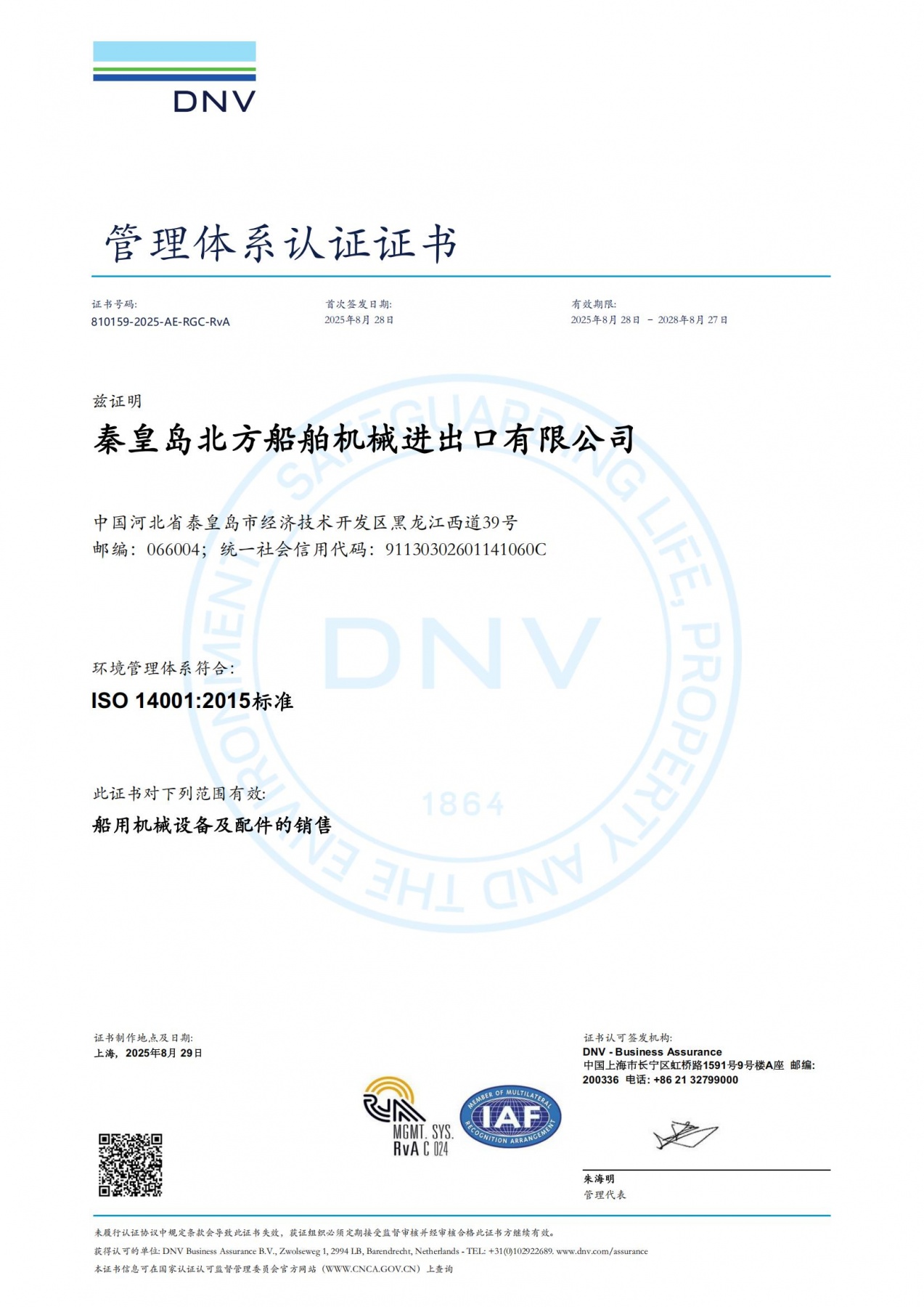 DNV管理體系認(rèn)證證書(shū)